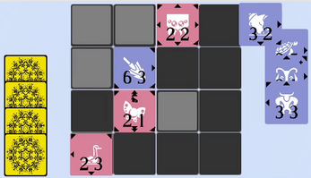 When you play a card, it flips each enemy card in an adjacent space that is has an arrow pointing to. If the card there also has an arrow pointing to your card, it only flips if yours has a higher offense than its defense. (The first number is offense, the second is defense).